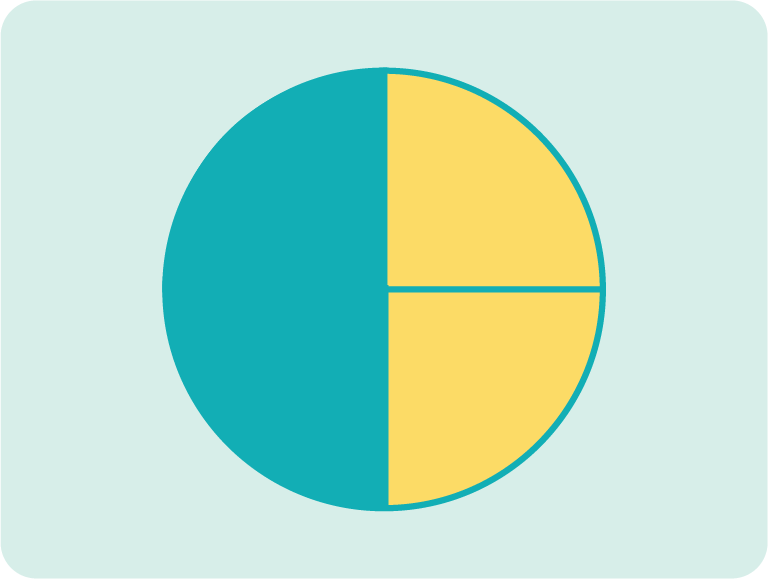 2 out of 4 equal parts
