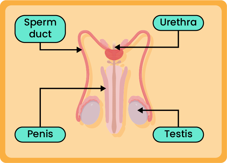 1) Testis : Produces sperm 2) Penis : Channels sperm out of the body