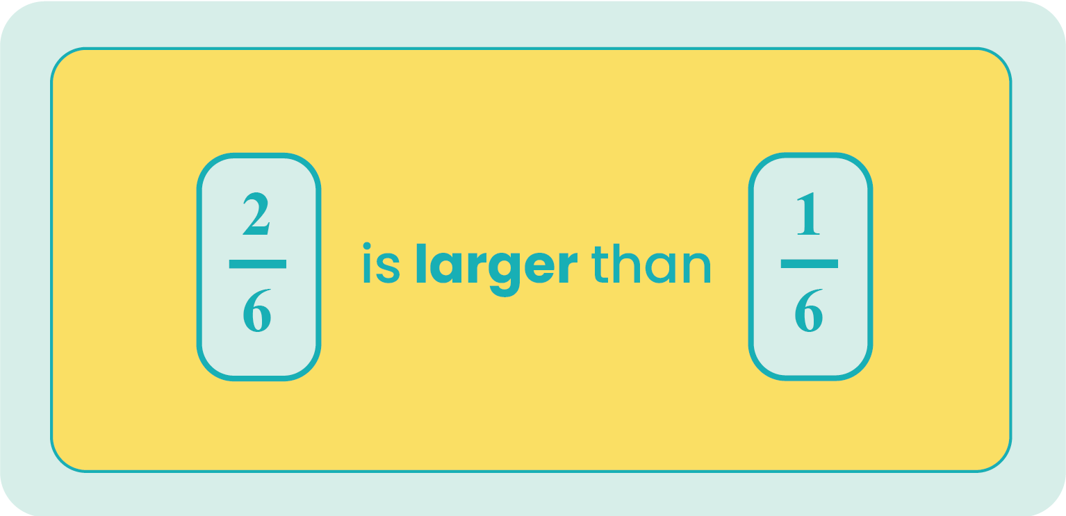Compare the fractions 1/6 and 2/6
